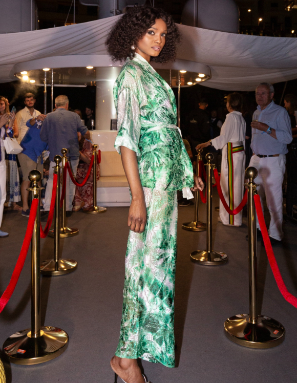 The set includes two pieces: flowing silk pants and a matching kimono jacket. The jacket can be worn as a chic swimwear cover-up or styled separately, while the pants pair beautifully with a silk top, bikini, or lightweight blouse. Ideal for daytime, beachside, or casual summer wear, this set captures the essence of French Riviera elegance and relaxed luxury.